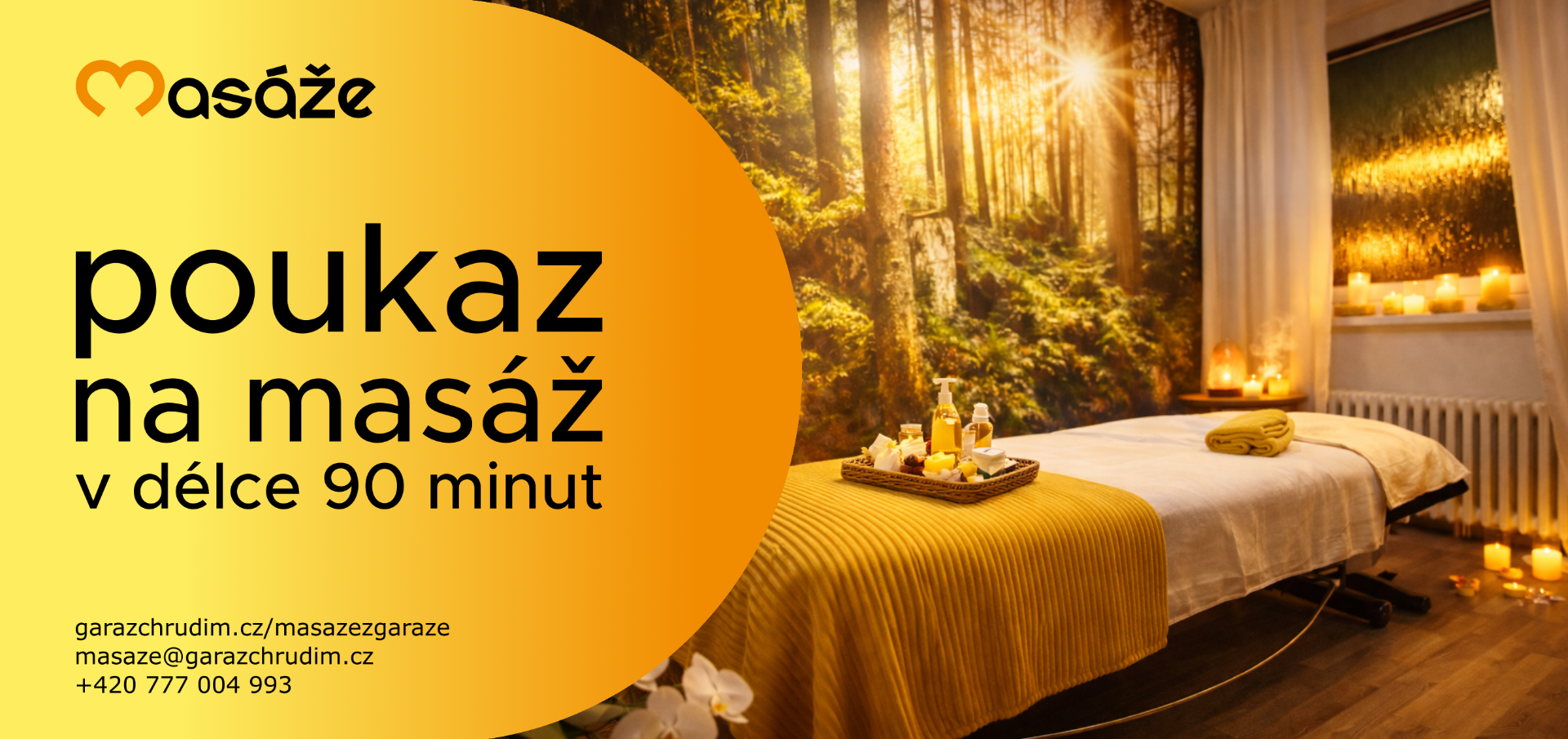 Poukázka na masáž dle vlastního výběru v délce 90 minut. Více info na garazchrudim.cz/masazezgaraze